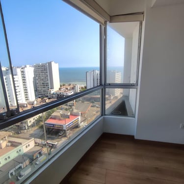 Este dpto cuenta con una linda vista a la ciudad y al mar, ya que se encuentra en el piso 16.
